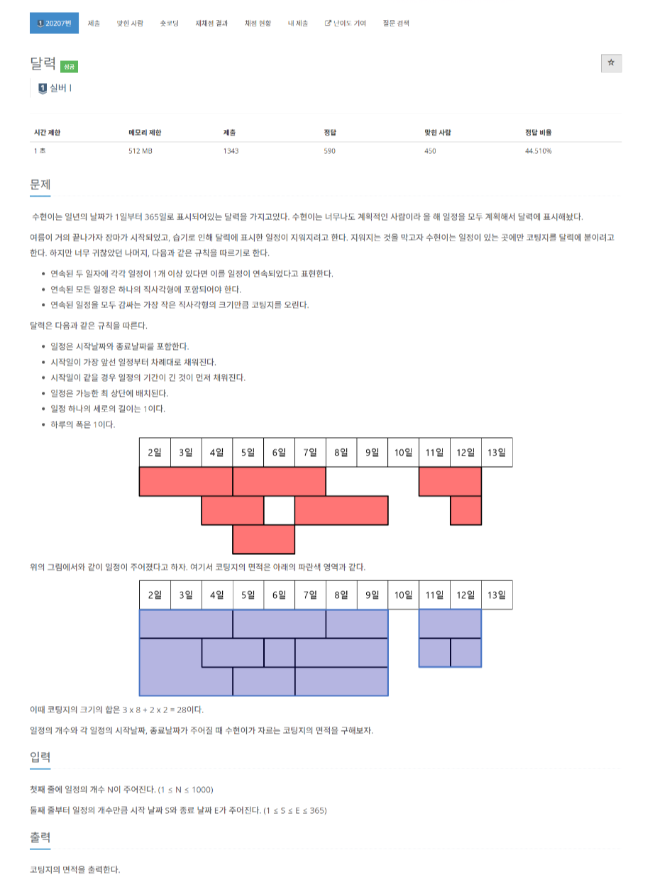 BOJ_20207 : ๋ฌ๋ ฅ ๋ณธ๋ฌธ