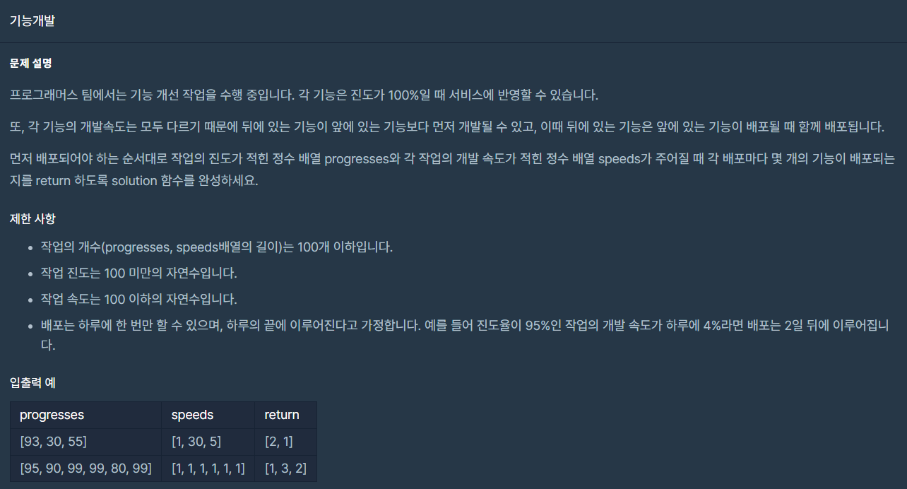 - ํจ๊ป ๋ฐฐํฌ๋๋ ์๋ฅผ ๊ณ์ฐํ ์ ์์ผ๋ฏ๋ก List ํ์ ์ ์ฅํ๋ค๊ฐ, ๊ทธ ์์ ์๋งํผ ๋ฐํ์ฉ int ๋ฐฐ์ด answer๋ฅผ ๋ง๋ค์ด ์ ์ฅ ํ ๋ฐํํ๋ค.