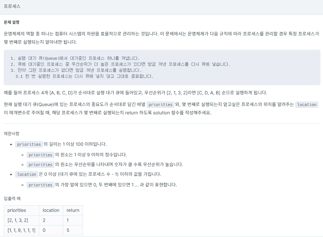 - ์ฐ์ ์์๋ฅผ ๋ด์ intํ ๋ฐฐ์ด priorites๋ฅผ ์ผ๋ฐ ํ์ ์ฐ์ ์์ ํ์ ๊ฐ๊ฐ ๋ณต์ฌํด ์ ์ฅํ๋ค.