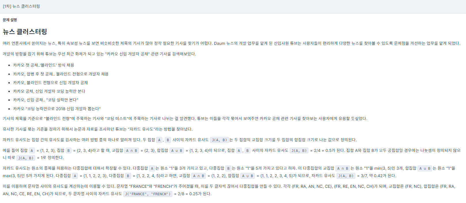 - 2018 KAKAO BLIND RECRUITMENT์ 5๋ฒ ๋ฌธ์ ์ธ๋ฐ, ์ค๊ธ ๋์ด๋์ด๊ณ ์ ๋ต๋ฅ ์ 41.84%์ด๋ค.