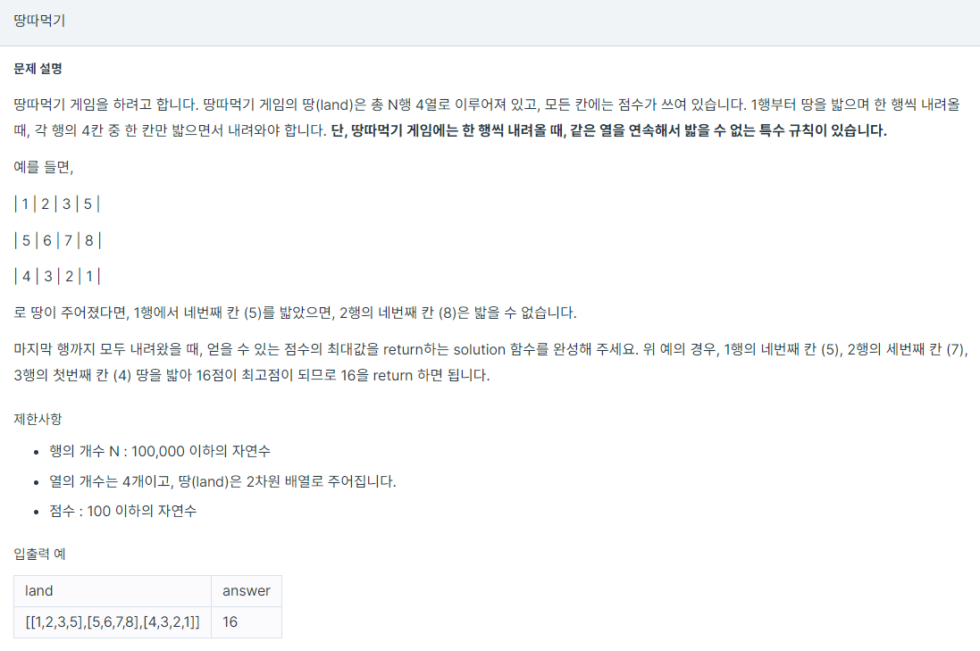 int solution(int[][] land) {