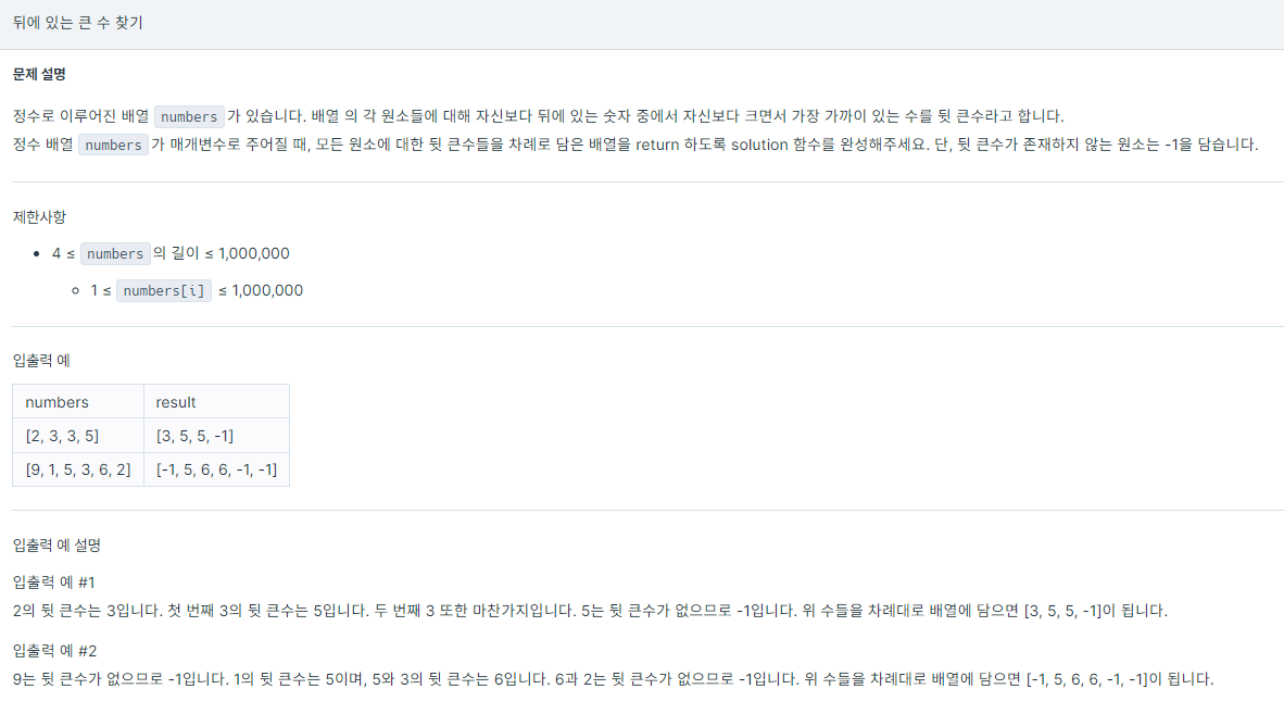 - ๋ค์ ์๋ ํฐ ์๊ฐ ์์ ์ ๋ ์์ผ๋ฏ๋ก, answer[i]๋ฅผ -1๋ก ์ด๊ธฐํ ํ๋ค.