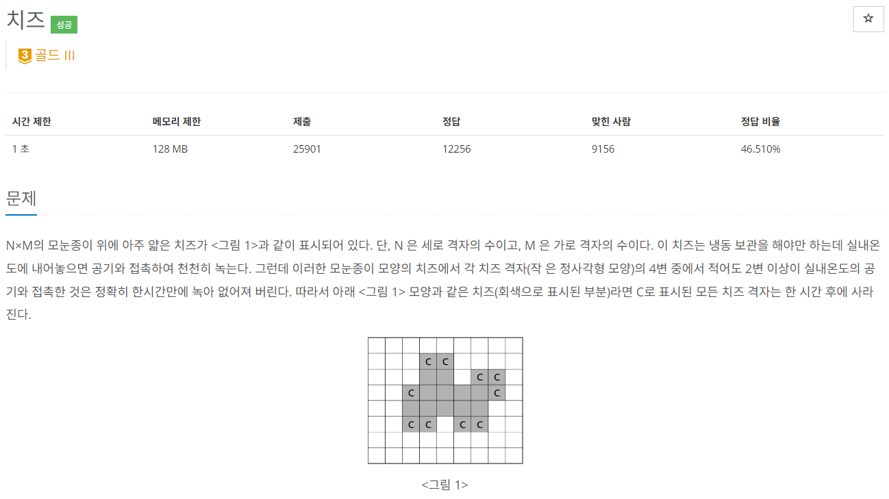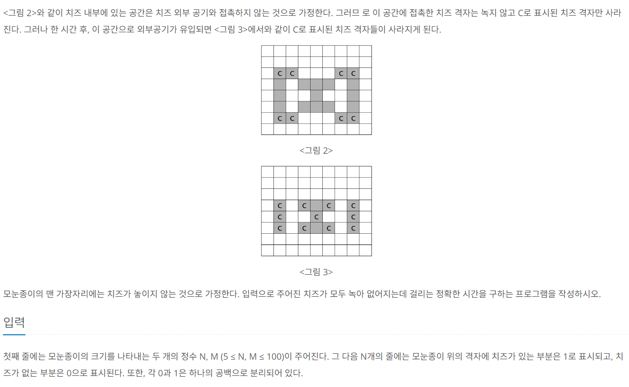 - N x M ๋ชจ๋์ข ์ด์ ๊ณต๊ธฐ์ ์น์ฆ๊ฐ 0, 1 ๋ก ์ฃผ์ด์ง๋ค.