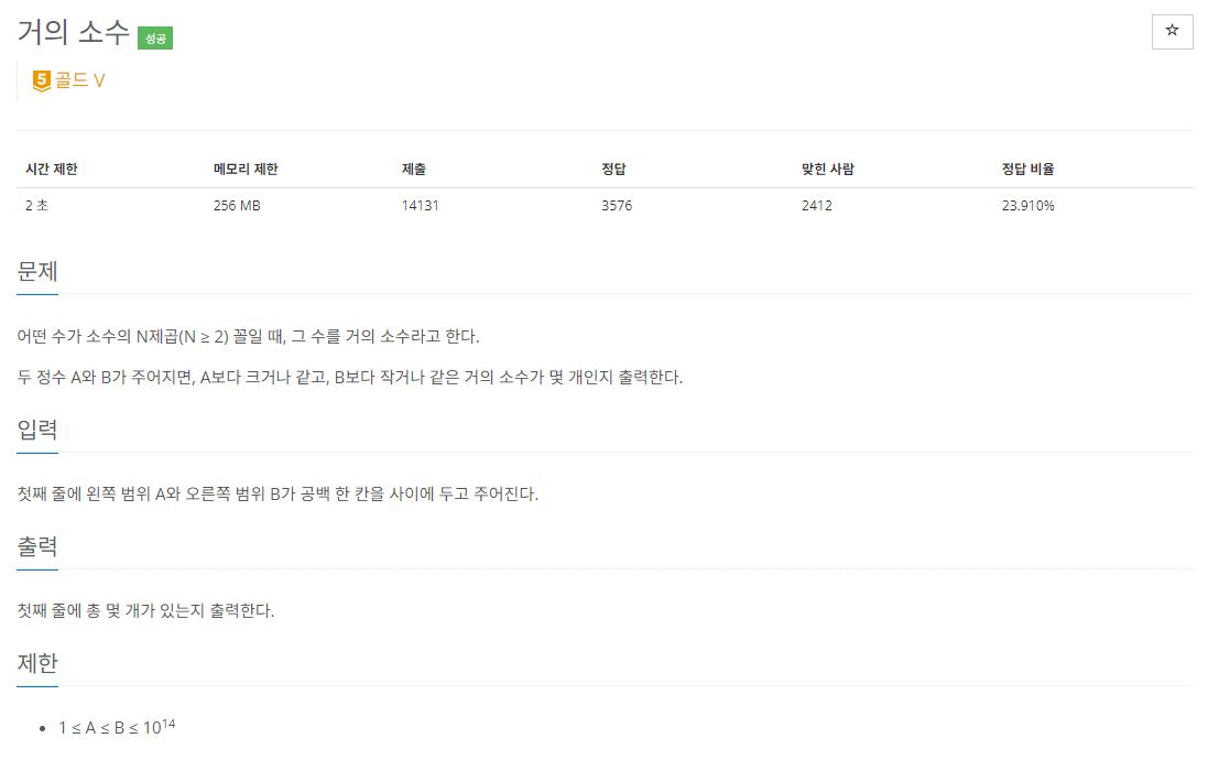 BOJ_1456 : ๊ฑฐ์ ์์ ๋ณธ๋ฌธ