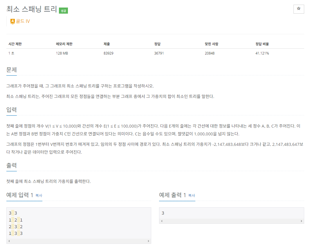- ์ต์ ์ ์ฅ ํธ๋ฆฌ(MST, Minimum Spanning Tree)๋ฅผ ๊ตฌํํ๋ ๋ฌธ์ ์ด๋ค.