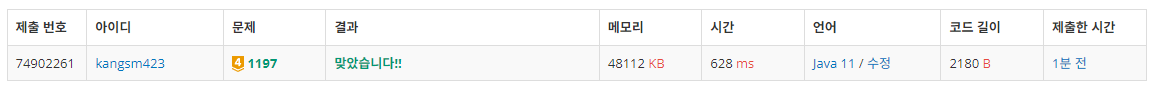 1197๋ฒ: ์ต์ ์คํจ๋ ํธ๋ฆฌ