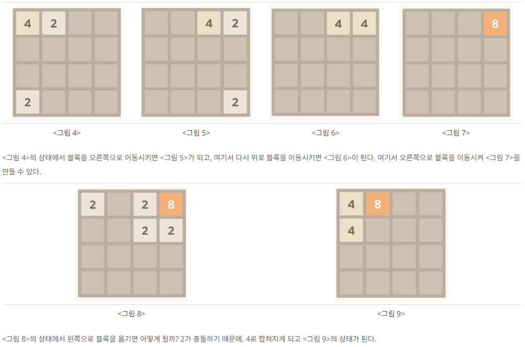 - 2048๊ฒ์ ๊ท์น์ ๋ฐ๋ผ ๊ตฌํํ๋ฉด ๋๋ ๋ฌธ์ ์ด๋ค.