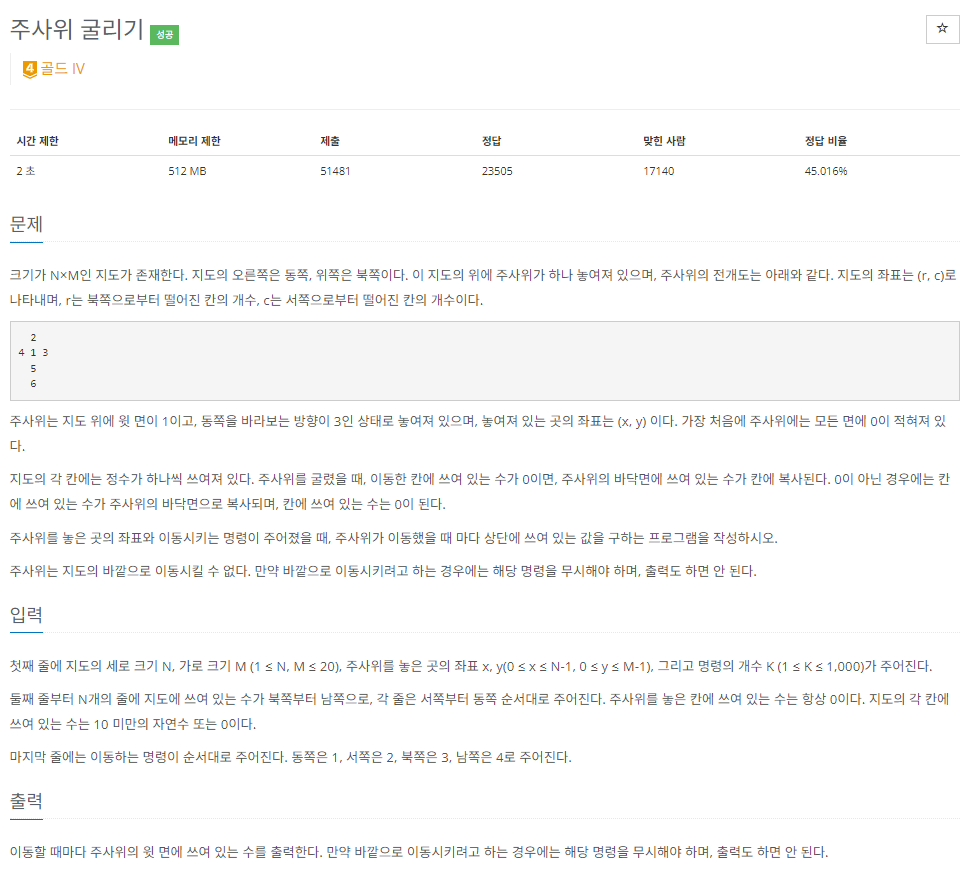 14499๋ฒ: ์ฃผ์ฌ์ ๊ตด๋ฆฌ๊ธฐ