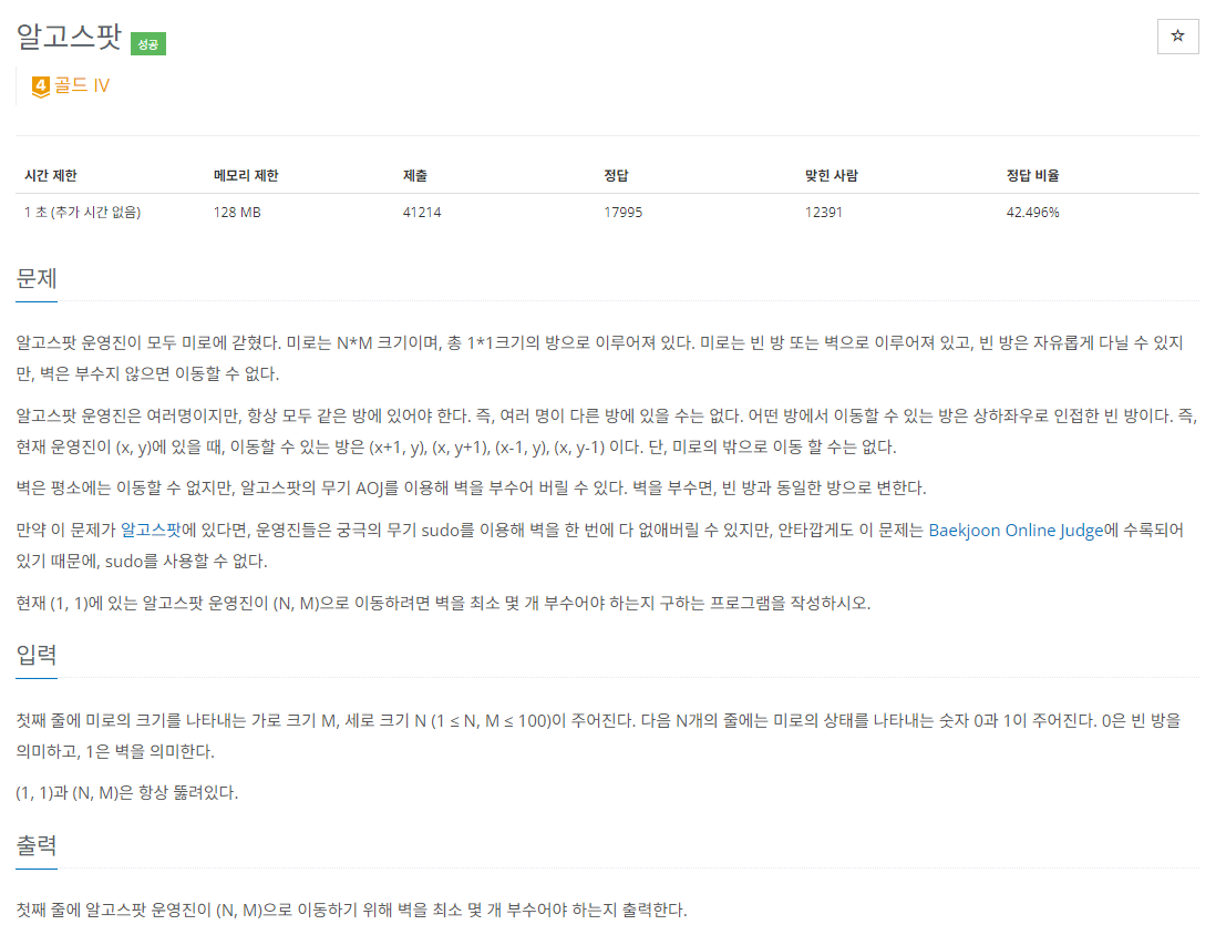 BOJ_1261 : ์๊ณ ์คํ ๋ณธ๋ฌธ