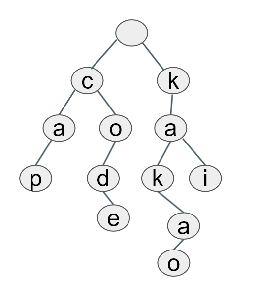 - 하나의 문자열을 저장할 때, 각 문자를 key로 자식 노드를 value로 트리 형태를 띄는지 확인한다.
