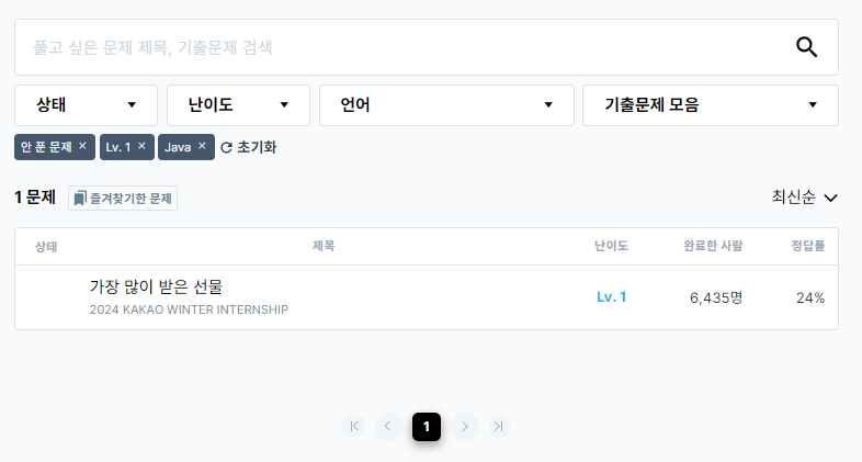 프로그래머스는 백준처럼 코딩테스트 연습을 위한 문제들이 레벨별로 정리되어 있다.
