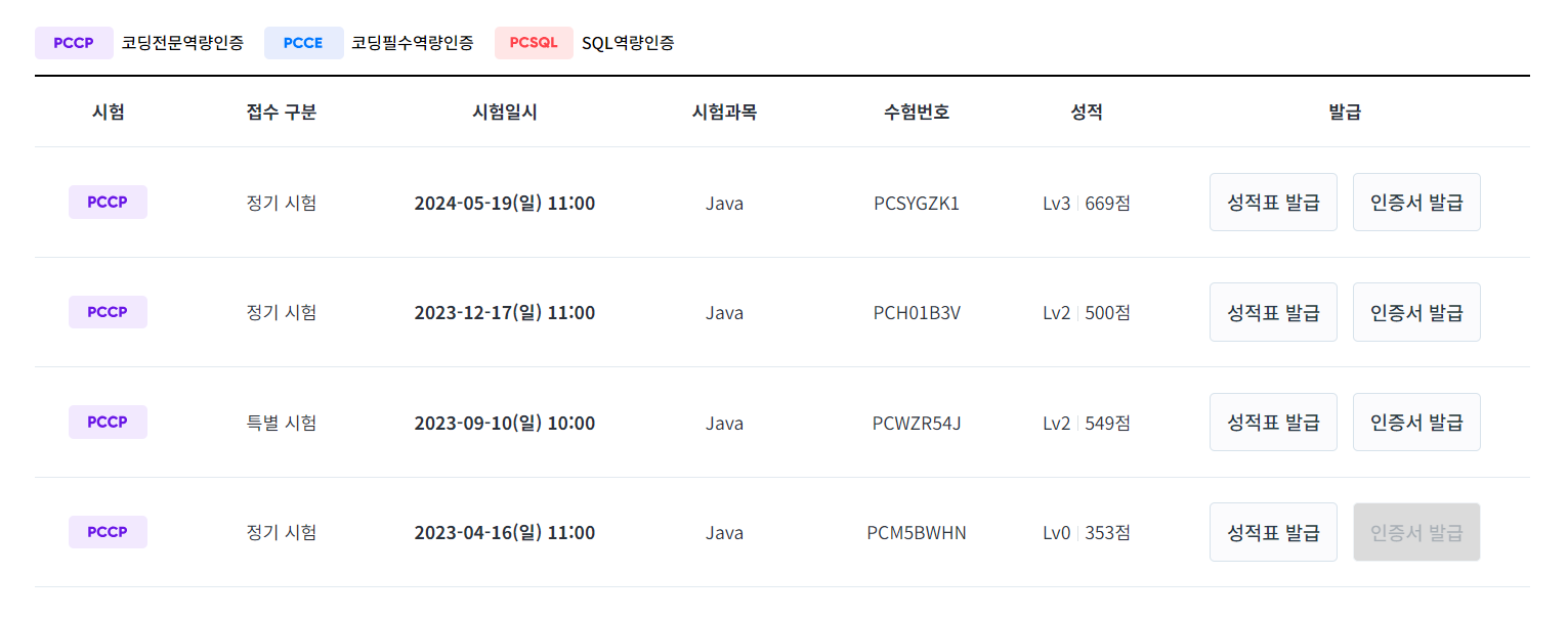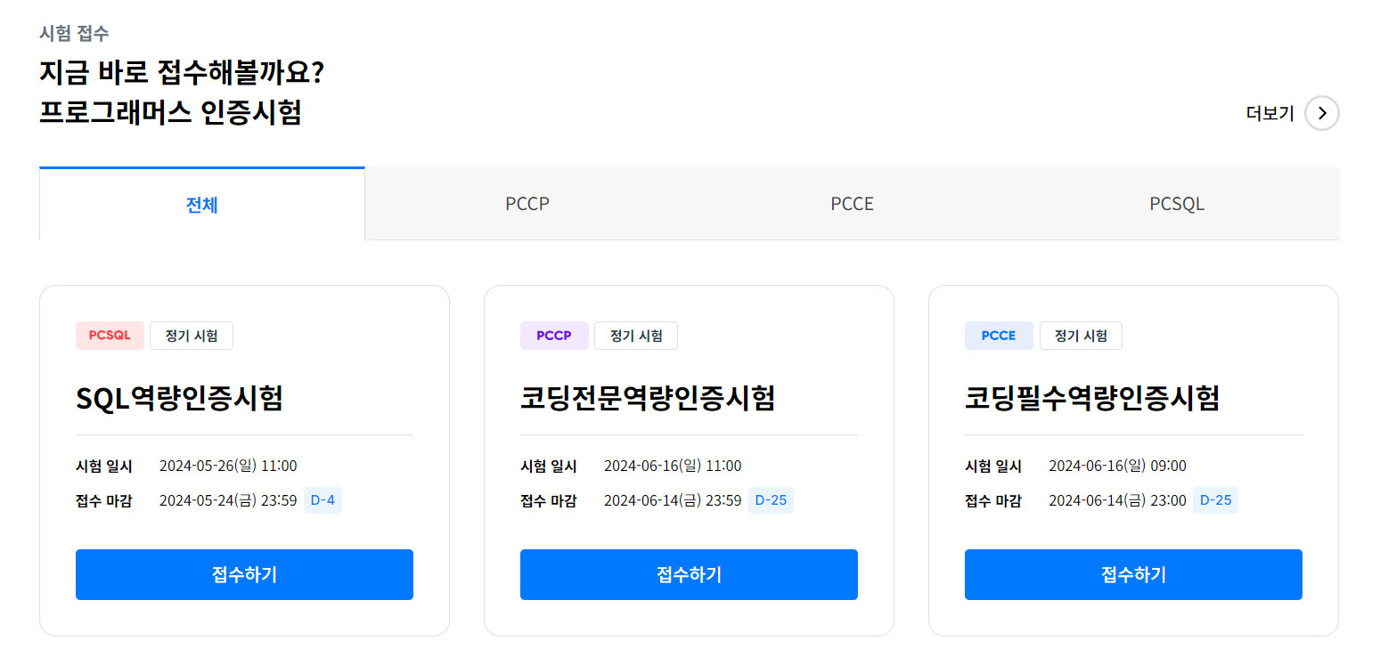 프로그래머스에는 현재 3가지 자격증이 있다. (https://certi.programmers.co.kr/)