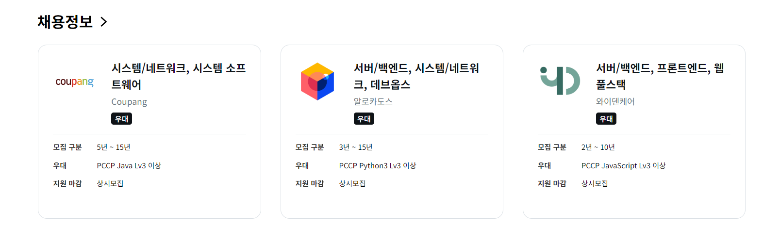난 개발자 지망이고, 다음과 같이 PCCP Lv3 부터 우대사항이 있으므로 목표를 Lv3 취득으로 정했었다.