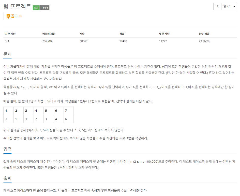 BOJ_9466 : ํ ํ๋ก์ ํธ ๋ณธ๋ฌธ