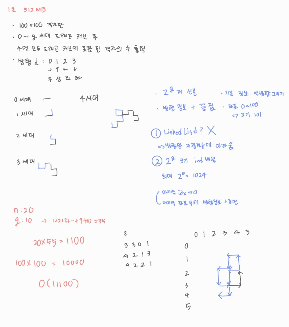 BOJ_15685 : ๋๋๊ณค ์ปค๋ธ ๋ณธ๋ฌธ