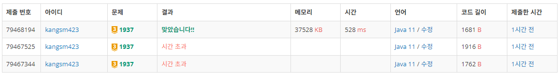 - ์ฒ์ ํ์ด๋ ๋จ์ DFS๋ง ์ ์ฉํด์ ์๊ฐ์ด๊ณผ๊ฐ ๋ฌ๋ค. 5~6 % ๊น์ง๋ ๋ง์๋๋ฐ ๋๋ฌด ๋๋ ธ์๋ค.
