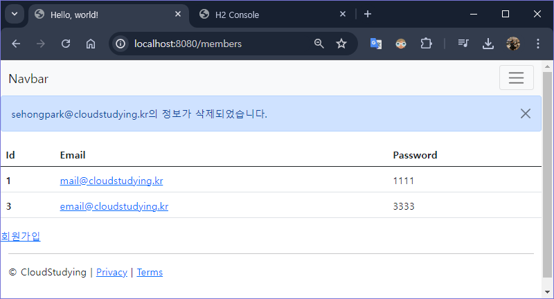 Membe 게시판에 회원 정보 삭제 기능 추가하기
