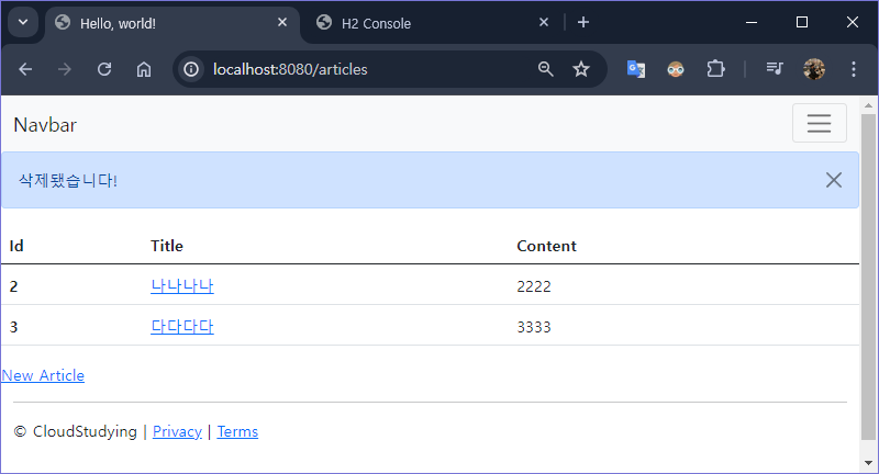 delete()매서드에서@GetMapping으로 받음 (HTML에서는@DeleteMapping으로받을 수 없기 때문) - 삭제 대상의 id를 위해