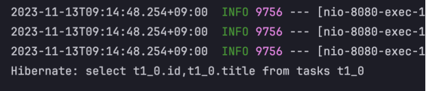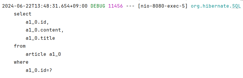 이 상태에서 HTTP 조회 요청을 보내면 다음과 같이 SELECT 문 쿼리가 정상적으로 찍히는 것을 확인할 수 있습니다.