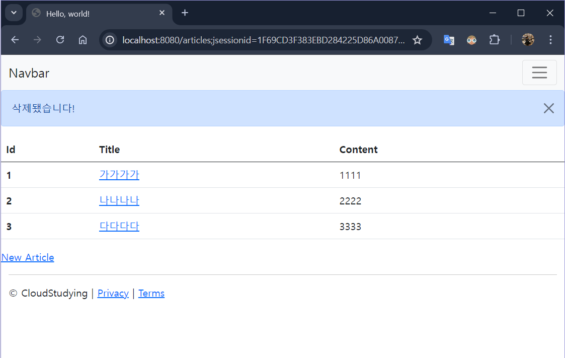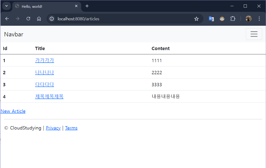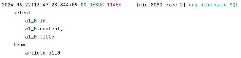 1. localhost:8080/articles 게시글 실행하면 SELECT문이 수행됨