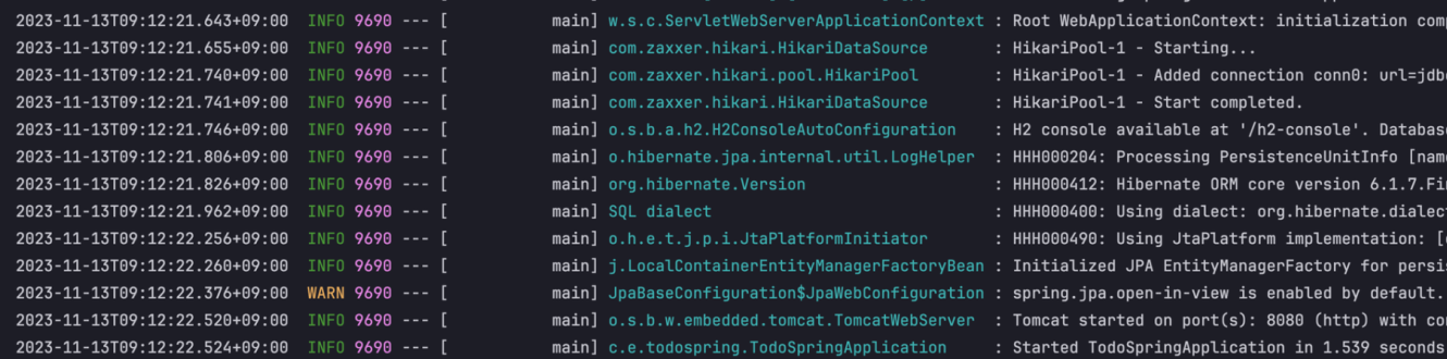 스프링 부트에서 로깅 레벨을 설정을 하지 않고 JPA를 사용하면 다음과 같이 아무것도 보이지 않습니다.