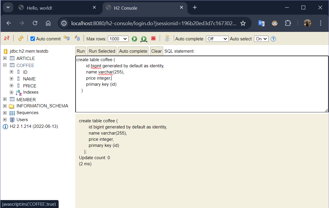 jdbc:h2:mem:testdb로고정