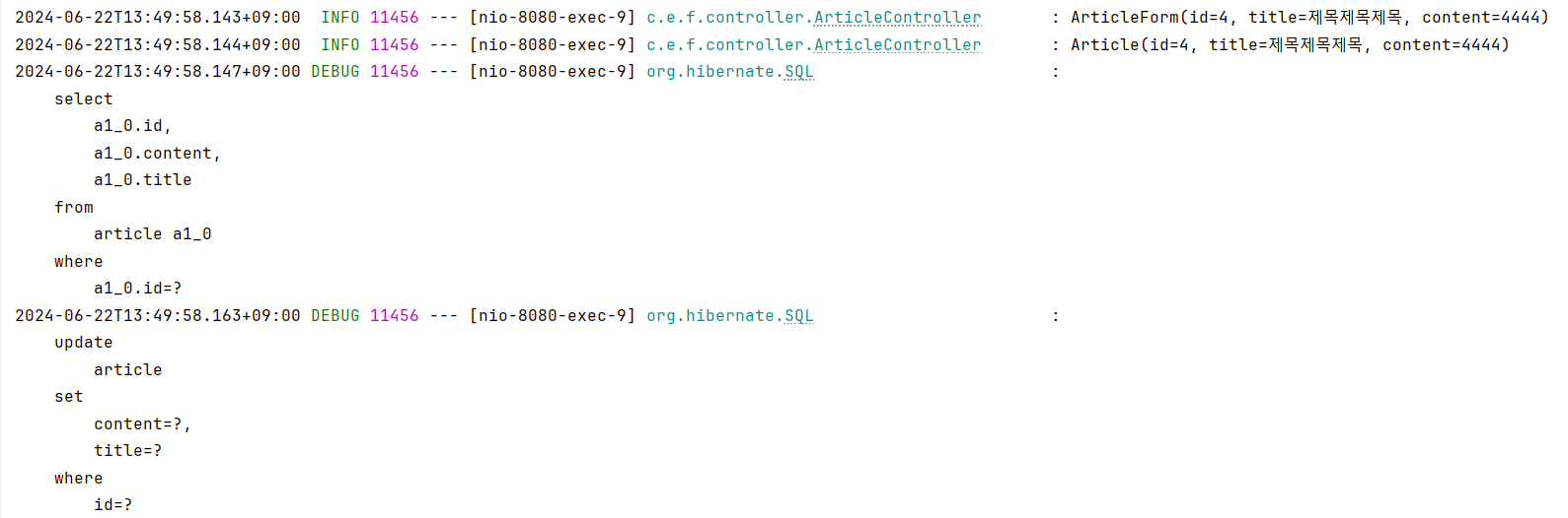 - 로그를 보면 어떤 쿼리가 동작했는지 보임
