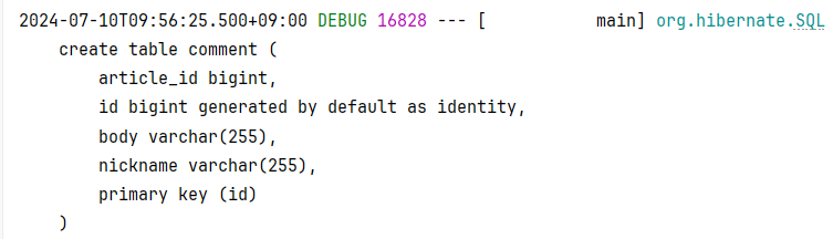 - comment 테이블의 article_id처럼 연관 대상을 가리키는 속성