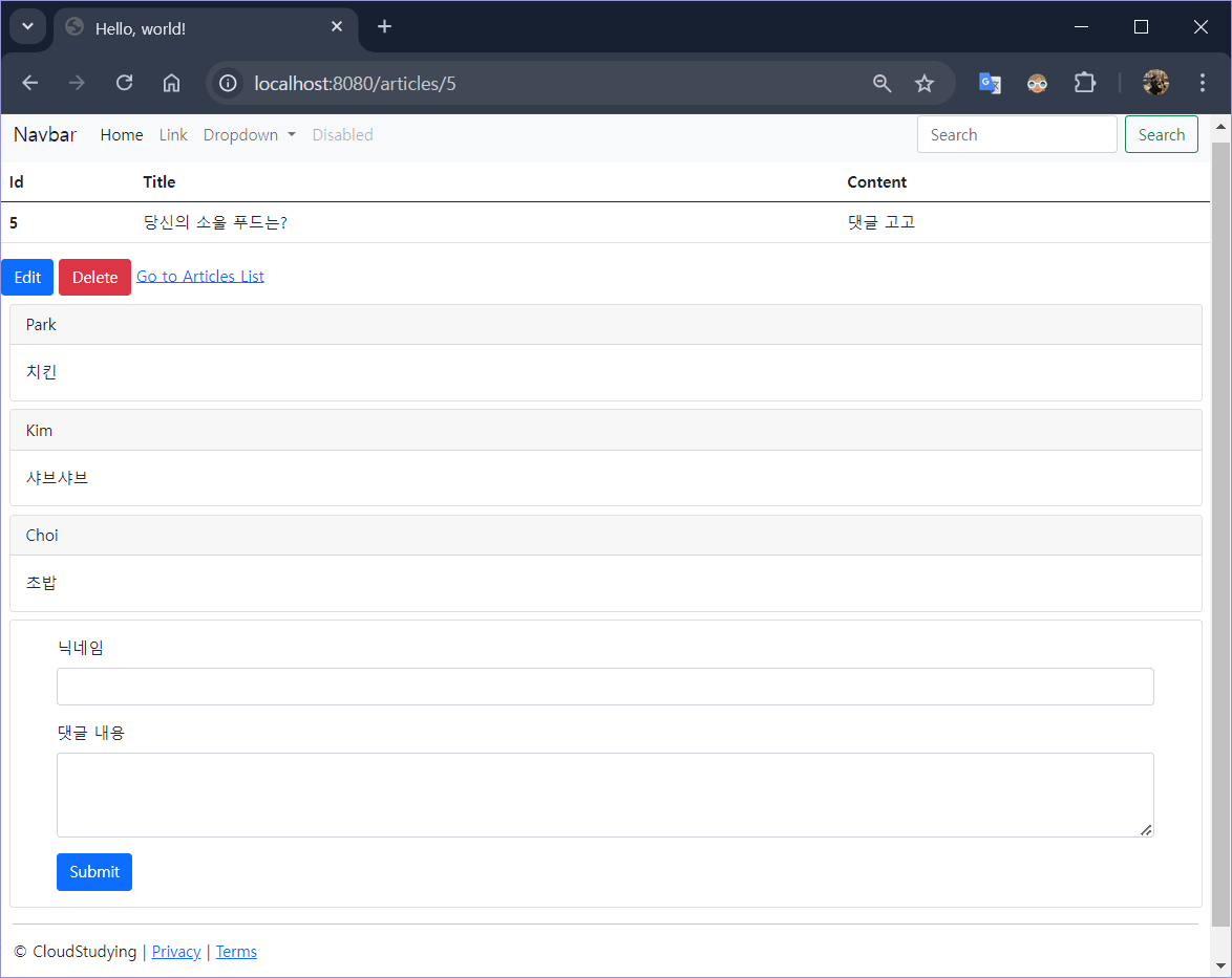 | 19장 : 웹 페이지에서 댓글 삭제하기 (0) | 2024.08.06 |