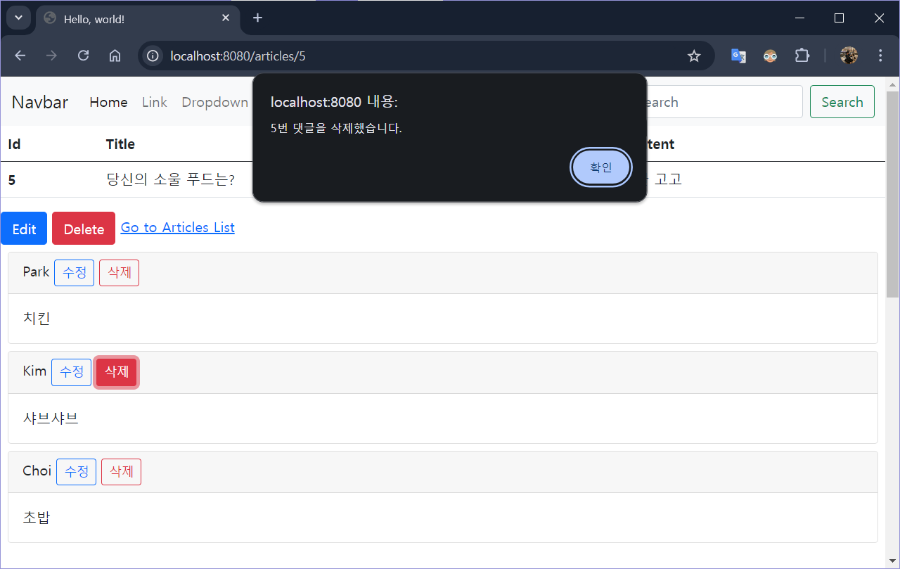 19장 : 웹 페이지에서 댓글 삭제하기 본문
