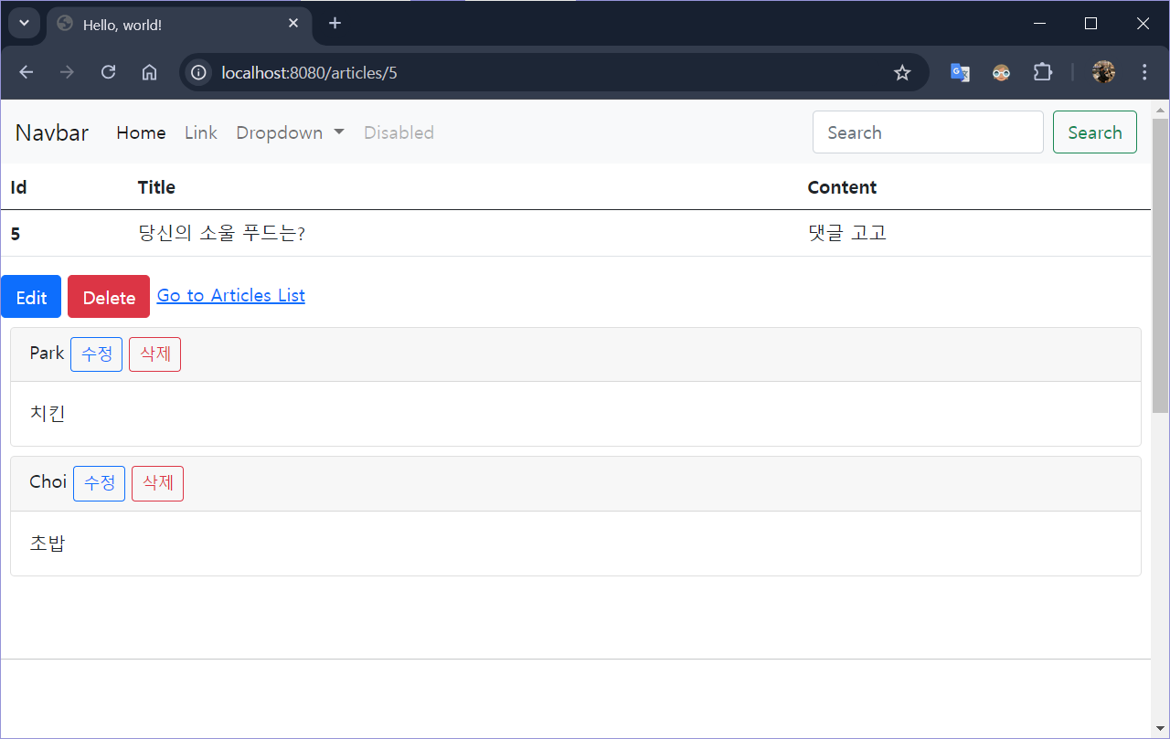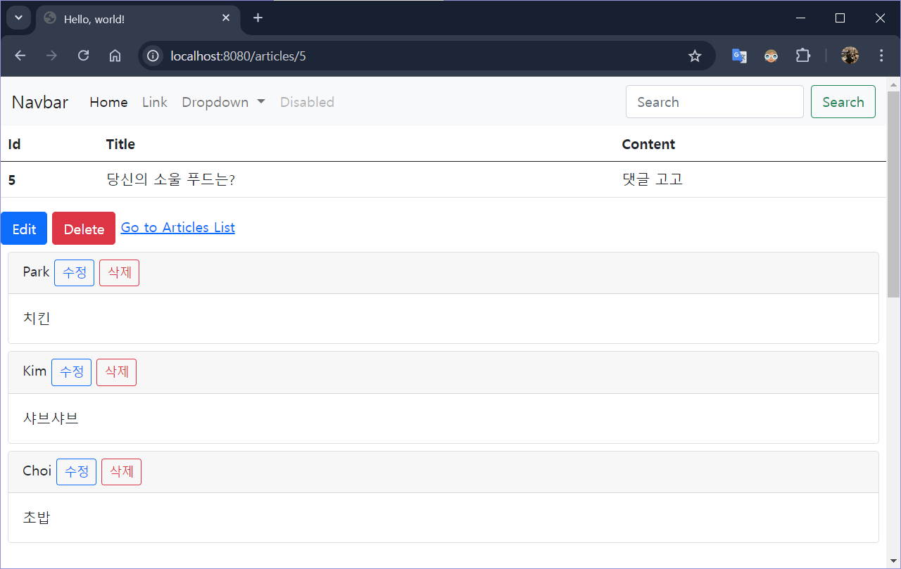 | 18장 : 웹 페이지에서 댓글 수정하기 (0) | 2024.07.30 |