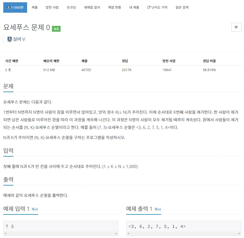 BOJ_11866 : ์์ธํธ์ค ๋ฌธ์ 0 ๋ณธ๋ฌธ