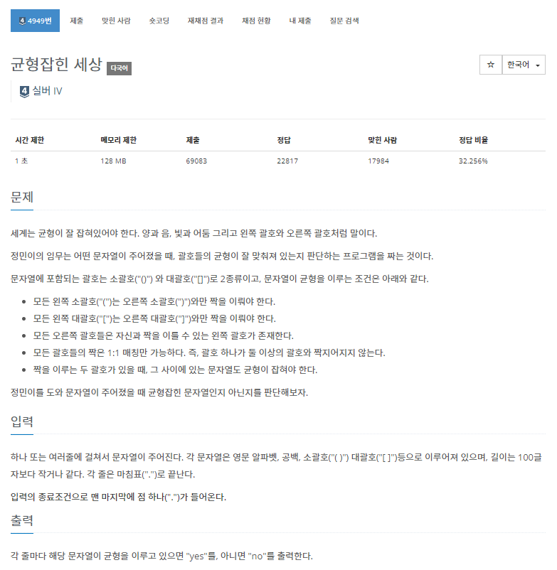 BOJ_4949 : ๊ท ํ์กํ ์ธ์ ๋ณธ๋ฌธ