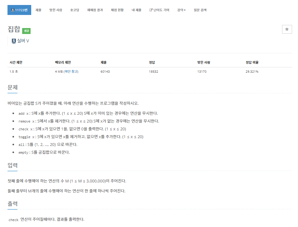 BOJ_11723 : ์งํฉ ๋ณธ๋ฌธ