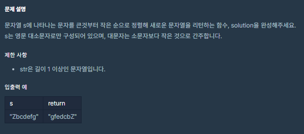 Lv.1 : ๋ฌธ์์ด ๋ด๋ฆผ์ฐจ์์ผ๋ก ๋ฐฐ์นํ๊ธฐ ๋ณธ๋ฌธ